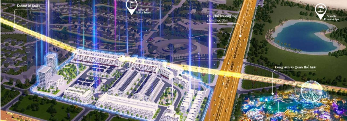 | Tiện ích nội khu: công viên cây xanh, công viên chủ đề, sân golf, TTTM, khách sạn,… | Bàn giao: xây thô hoàn thiện cơ bản |